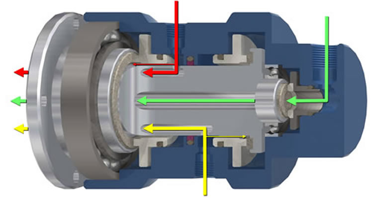 机械密封旋转接头通过有意平衡流体动力学力,最小化密封磨损、扭矩和热生成。平面度必须控制在微米范围内,并根据所需的转速、压力和介质使用不同的密封材料。这些接头即使在压力>140 bar和速度>40,000 RPM的情况下也能可靠地运行。机械密封接头可以根据机器的运行条件变化而进行不同的设计。