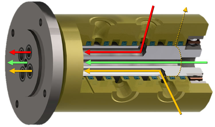 旋转接头允许水、空气、液压油、金属加工液、液压油、蒸汽、真空和各种其他介质通过。它们可以安装在旋转轴的末端或周围。